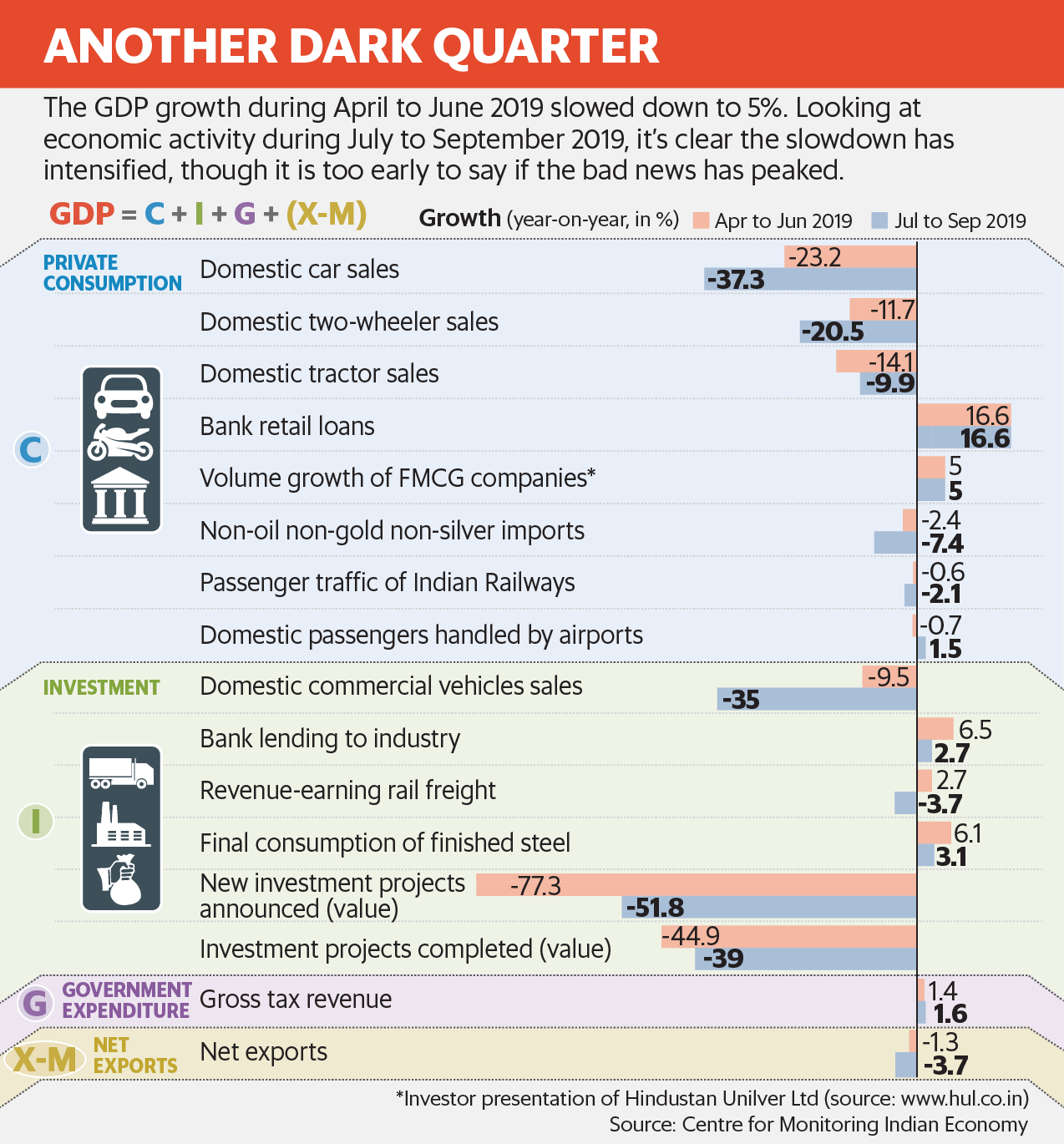 Clearly, the situation during July to September 2019 has only worsened in comparison to April to June 2019. The stock market might be doing well thanks to a few selected stocks rallying, but that hasn’t been able to lift the mood across the economy.